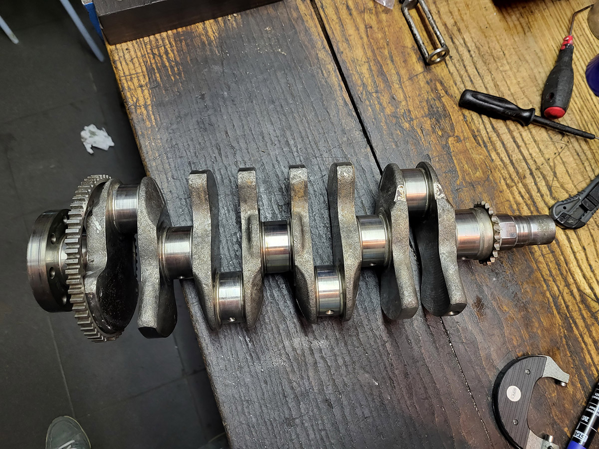 Lepší rovnou udělat výbrus a honování válců, kontrolu klikové hřídele ultrazvukem atd., takže polomotor putoval na doporučení k panu Mackovi, motoráři ze Štítů u Šumperka.