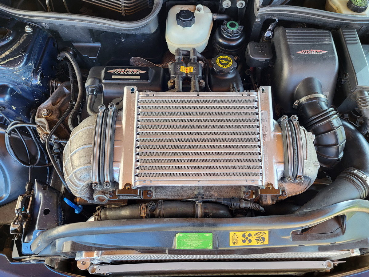Starý intercooler kompresoru už byl dost zašlý, z Německa se mi podařilo sehnat repliku GP intercooleru od Nissens a i originální GP kryt intercooleru. Ceny mimo, ale chtěl jsem, ať to vypadá a už jsem tam tak jako tak zahučel strašně moc :biggrin: Motorový prostor jsem kompletně vyčistil, škrábance na laku opravil barvou a jako třešničku na dortu pořídil očička Minimeyes.