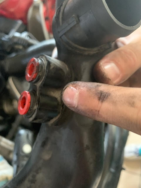 Jenže jsme zjistili, že je tam nějaký problém, jelikož výkon se vůbec nezvedl oproti základu (bylo sice velké teplo ale řemenice a vstřiky byli jiné plus to sání) Očekávání bylo aspon 210-220 koní, což se minulo... Tak jsem začal pátrat co se kde stalo a našel jsem, že si auto někde přisává vzduch. Našli jsme nedocvaklé podtklaky na tomto: