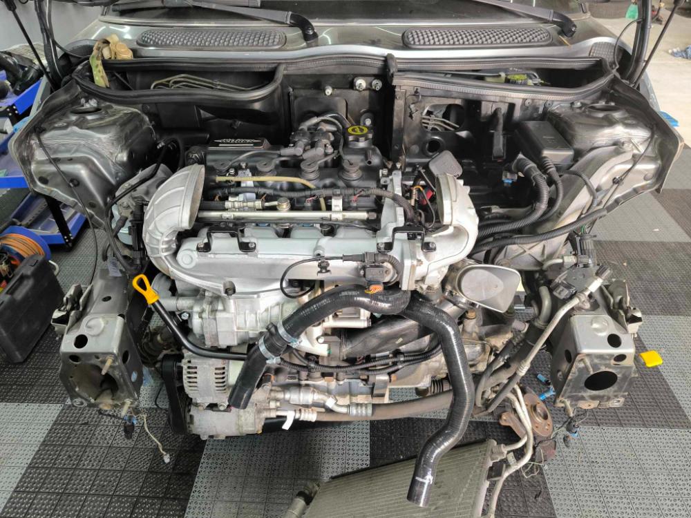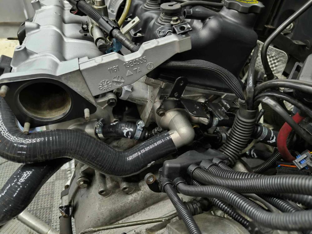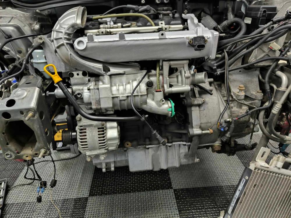 Následovaly "ramínka" sání, nové šrouby, lišta se vstřikama, cívka a kabely na místě, kompresor nahozený zpět, ošetřené vedení měrky oleje taky na místě.