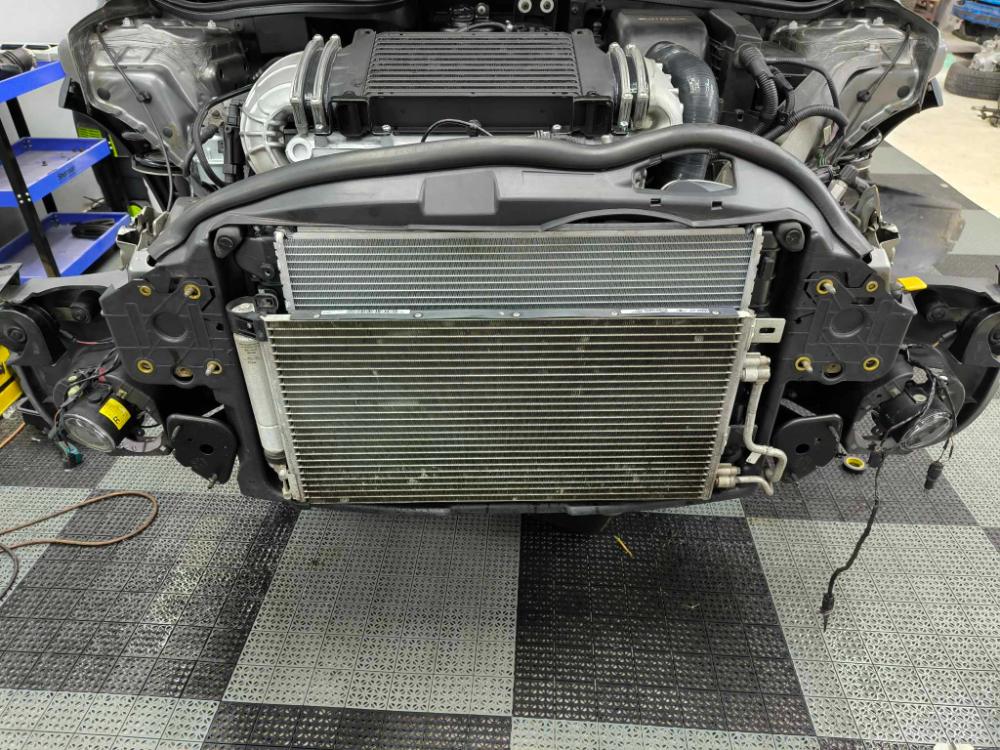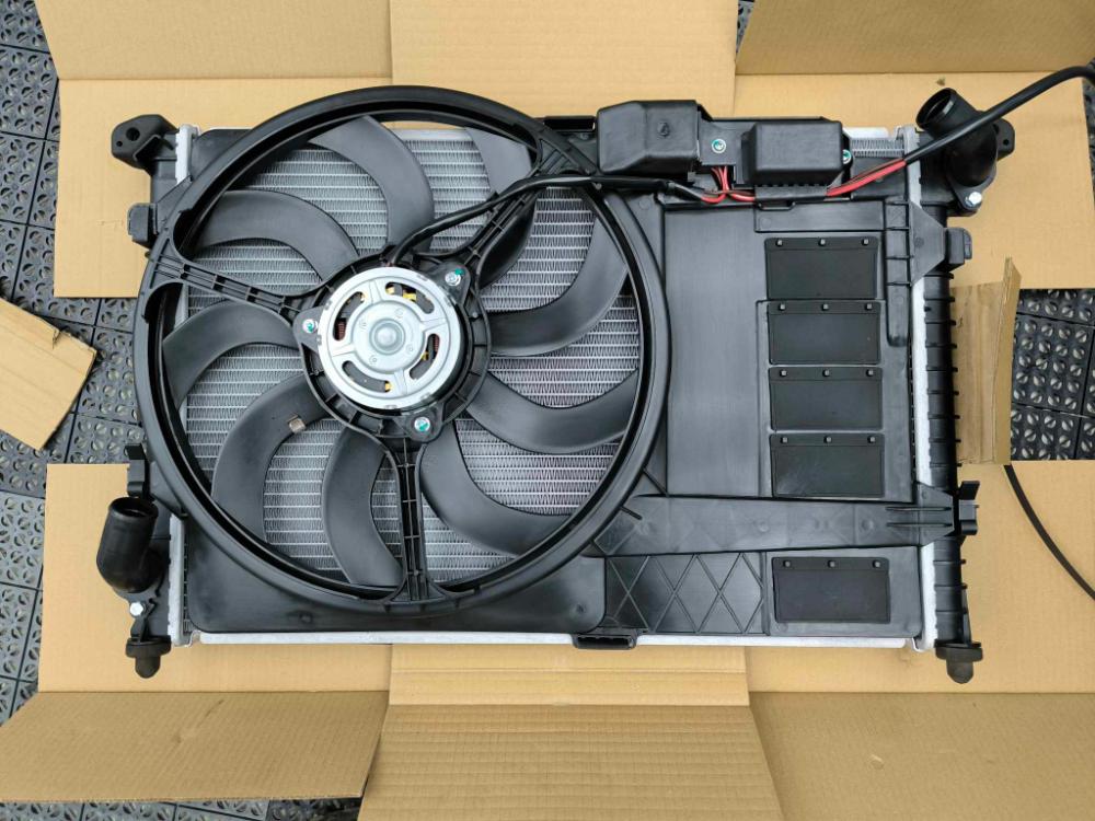 Následovala chladičová stěna, kterou jsem musel koupit novou. Původně tam byla nacpaná poupravená z R50, navíc utíkala chladička z chladiče, tudíž nový chladič a samozřejmě rozsypaný předřadný odpor. Sice jsem koupil náhradu, ale nakonec jsem zvolil verzi koupení celé sahary s už osazeným odporem.