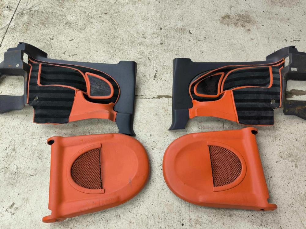 Minulý víkend jsem ještě vyměnil zadní obložení a zadní kryty sedaček protože už jsem nevydržel koukat na ten oranžovej blivajz. Hlavové opěrky mám zatím sundané, ty půjdou na přešití.