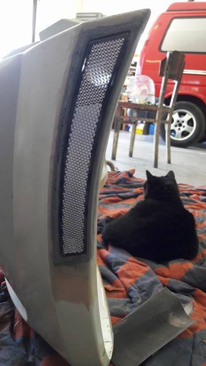 Jenže pak nastala mravenčí práce s rozporcováním US lemů z verze cooper a vetknutí domků na pozičky do předního evropského JCW nárazníku... Hlubokou úctu skládám Láďovi Halenkovi, mechanikovi z Dobřichovic. Pánové, to je neuvěřitelný perfekcionista. Kdysi taky sedlal R53 JCW :D On průser byl v tom, že plast na nárazníku a ten na domku je každý z podstaty jiného charakteru, takže nejdou svařit. Lze je jen slepit a to velmi složitým procesem, kdy ty plasty nesmí na sebe dosednou, mezi nimi je vrstva speciálního lepidla. A moc šancí na to, že to někam může ujet tady fakt není. Musí to být prostě přesné. Po vyřezání, usazení, měření a broušení to dělal lepící sadou od Wurthu (kufřík s mnoha priméry, sekudéry, finišéry, distančními tyčinkami...). Po týdnu opartného řezání, broušení, ladění, pasování, zasychání a broušení se dostáváme do fáze, kdy pomalu vyrážíme do lakovny. Prahy jsou snad v cajku, ale bude třeba sundat původní vrstvu plniče a udělat to znovu. Veškerý montážní materiál pro instalaci JCW kitu je zakoupen dle realoem.com v BMW. Tak snad to klapne. Jen se trochu bojím nutné kreativity při montáži prahů. Nosníky na JCW kit se na první generaci už nedělají, tak jsem koupit ty na druhou. Údajně by snad mělo jakž takž jít. Tak jen doufám, že do srazu fóra bude vše na svém JCW místě :bigups: