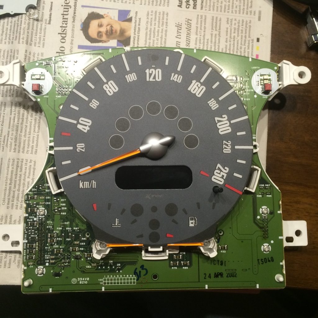 Starý budík odešel do věčných lovišť. Takže tohle je fungl nový budík, jako že Brand new:D Tak ho Ondra musel nakodovat, pájel k tomu ty jeho zázračný krabičky, což jsou věci kterým já prostě nerozumím a když mi ukazoval ten Matrix co tam nahrával, sedl jsem si proti němu a pustil to z hlavy:D Takže teď už ukazuje vše co má, i nádrž správně atd.