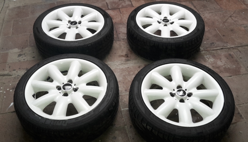 O víkendu jsem opravil oděrky na kolech, zalakoval, vyhodil odrbaný MINI loga a nahradil novýma. Včera večer jsem to už nevydržel nasadil na auto. Proti zimní run-flatům jsou to parádní bačkůrky :-)