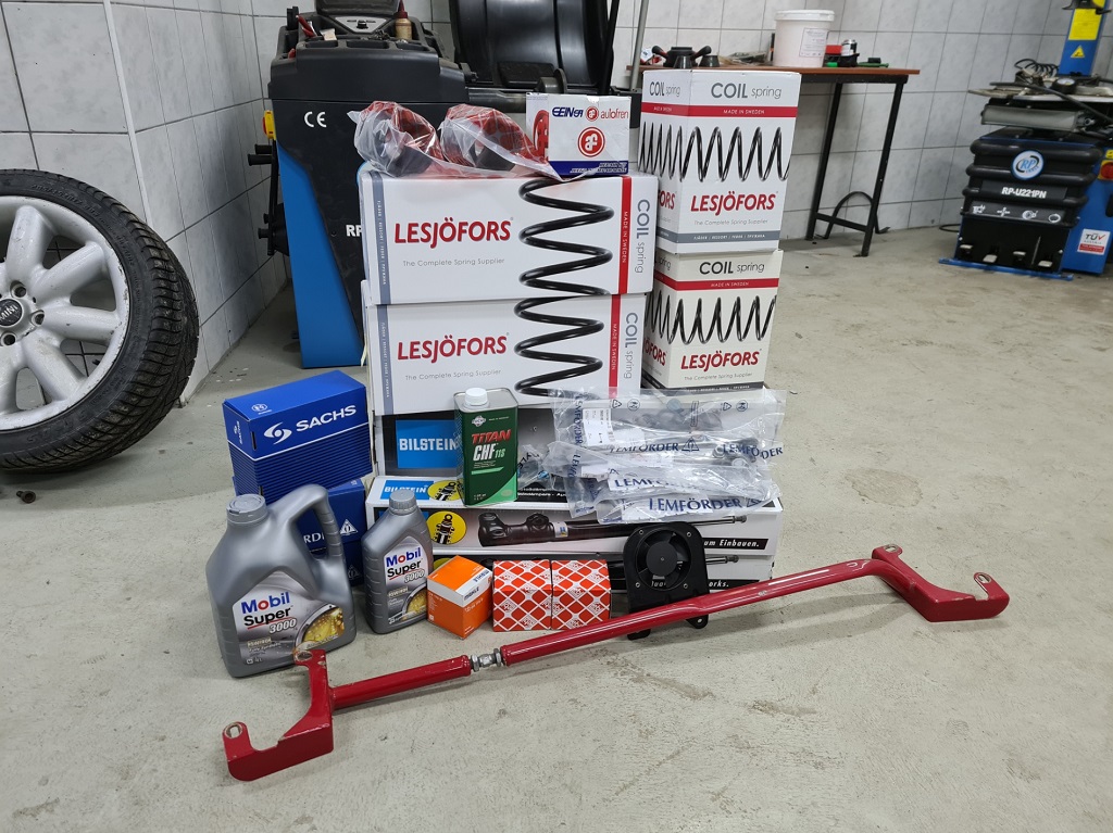 Menili sa tlmice, pruziny, ulozenia, dorazy, prachovky, tycky stabilizatora, olej, filter, servo kvapalina, napinak rozvodovej retaze, vnutorna manzeta pravej poloosi, pribudla horna rozperna tyc a vytlmila sa komplet dashboard a A stlpky.