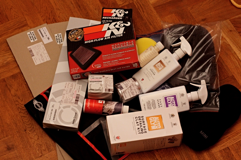 Už se to nedá vydržet. V zimě jsem stál, byť jsem kabria občas vídal. Ale to fakt ne :roll: No až se to jaro snad už brzy zeptá co jsem dělal v zimě, tak jsem pilně četl, střádal, občas něco objednal, po špičkách chodil kolem v garáži spícího MINI a těšil se :) Až teda konečně jaro zabuší na garážová vrata, tak jsem připraven a natěšen. Dávám zimě týden, maximálně dva a pak konečně vyndám baterku z pokojové teplopty a občasné péče udržováku a postupně začne tahle hromádka mizet. Odstartuje to výměnou oleje a filtrů, nákup v RENOCARU u Martina :bigups: Také konečně přidám i koncovku výfuku, která i přes hodně nadstandardní výbavu chybí. Už teda ne :mrgreen: Pak přijde to mazlení při omytí neutrálním šamponem z Detailing Shopu, samozřejmě s ovčí rukavicí :lol: Poté péče o kůži uvnitř. Po vyčištění střechy ještě dodám impregnaci. Následně přijde cesta ke zručnému lepiči na nahození černých origo kšandiček na přední kapotu, ty dodal Ježíšek :biggrin: A brzy bude následovat velké laborování s čistidly a leštidly, včetně claye s lubrikantem. Trochu se toho bojím, ale snad to zvládnu. Kdyby někdo měl nějakou praxi a radu, sem s ní... A pak leštění, voskování... Dokoupen origo deflektor a i originál bágl na něj, special thanks to Mini Mike a Mekk! Další plány a jejich realizace následují. S přicházejícím jarem mě to silně táhne do Hradce, je třeba dát kobylám ovsa, když už budou mít přes KN vložku aspoň trochu svěží vzdoušek :banana: