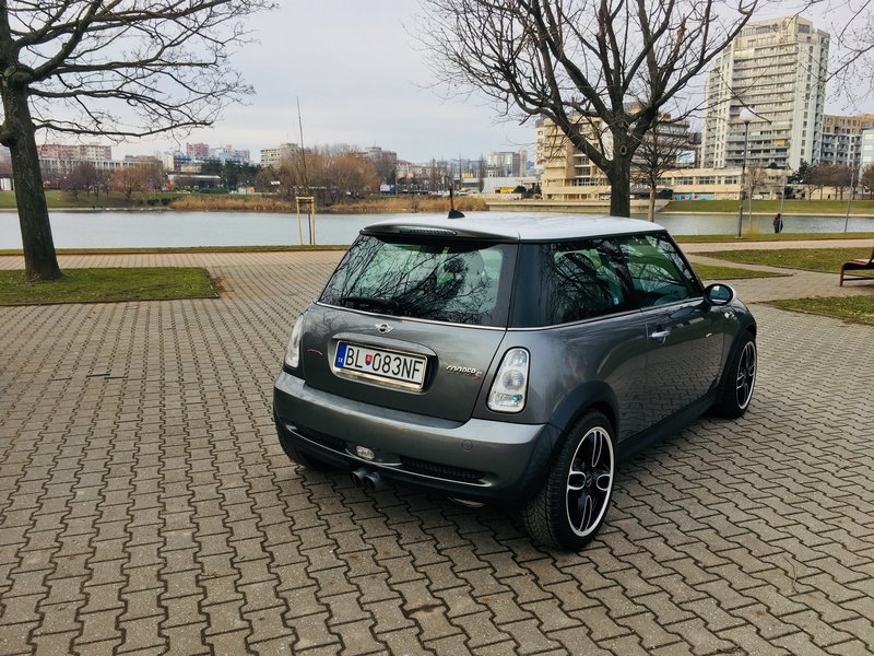 Priviezli sme si ho z IT a po všetkej tej byrokracii spojenej s prihlásením si ho konečne užívame naplno. Cooper má už za sebou prvotný servis (olej, filtre), taktiež dostal novú obuv na zimu. Predošlý majiteľ bol vášnivý motorkár a auto využíval len ak práve nemohol jazdiť motorkou. Najazdil na ňom len niečo málo pod 114t km. Autíčko je naozaj vo veľmi dobrom stave, aj keď zopár múch predsa len má: 1.) spojka - zaberá takmer na podlahe, vymením ju najskôr niekedy na jar, 2.) horné uloženie pravého predného tlmiča - to musím vymeniť čo najskôr lebo to vŕzganie je naozaj diskomfortné, 3.) spadnutá stropnica - ako som sa tu dočítal tak tento problém riešilo už viacero ľudí, čaká to aj mňa. Inak je všetko OK. Najväčšiu radosť mám z výfuku, ktorý robí neskutočný rámus :rock: