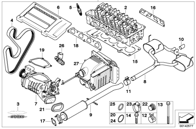 V pôvodnom talianskom techničáku mám zapísaných 125kW (továrenských) + neskôr dorobený záznam o navýšenom výkone na 155kW (tiež nový Mk, maximálka, hodnota hluku, emisie CO2, spotreba). JCW kit obsahoval to, čo je na obrázku. Certifikát sa dával, ale ten kit sa dá napr. kúpiť aj na ebay s certifikátom. Pozri vlákno používateľa Pumik, on si sám urobil z eSka JCW ( :pray: )