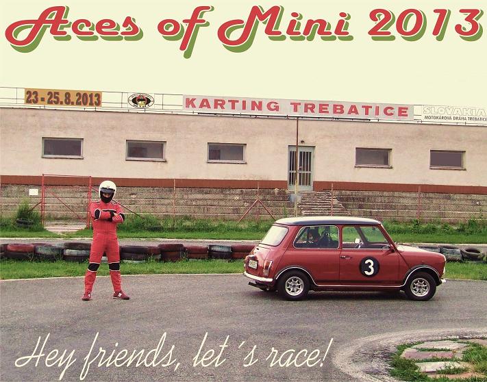 Srdečne Vás pozývame na 3.ročník Aces of Mini 2013, ktoré sa uskutoční opäť na motokárovej dráhe v Trebaticiach pri Piešťanoch dňa 24.8.2013. Tešiť sa môžete jazdeniu na uzavretej dráhe, meranie si síl s ostatnými súťažiacimi, prekonávať rekordy trate, či dokonca okúsiť pôžitok z víťazstva? Ale hlavne sa pri tom dobre zabaviť a relaxovať. Počas jazdenia nebude chýbať skvelá hudba, občerstvenie a zábava...
