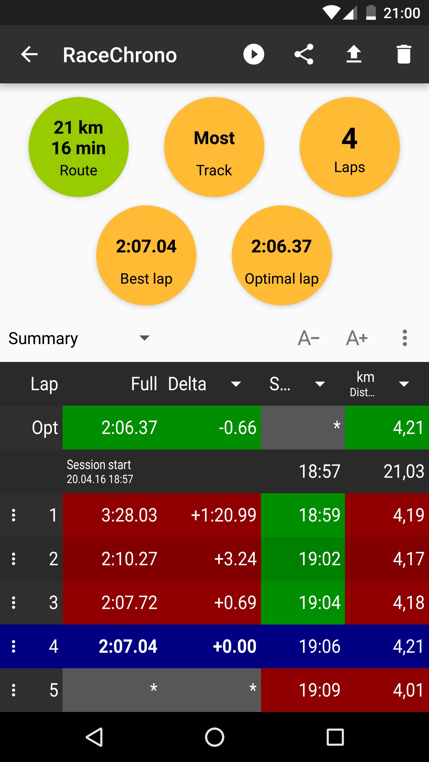 Až na podruhé jsem si vzpomněl, že mám v mobilu RaceChrono, které změřilo nejrychlejší čas 2:07.04