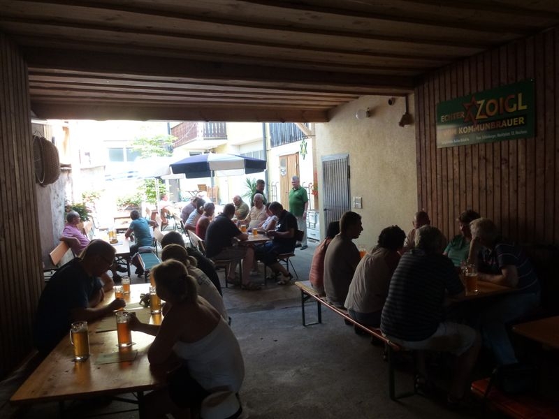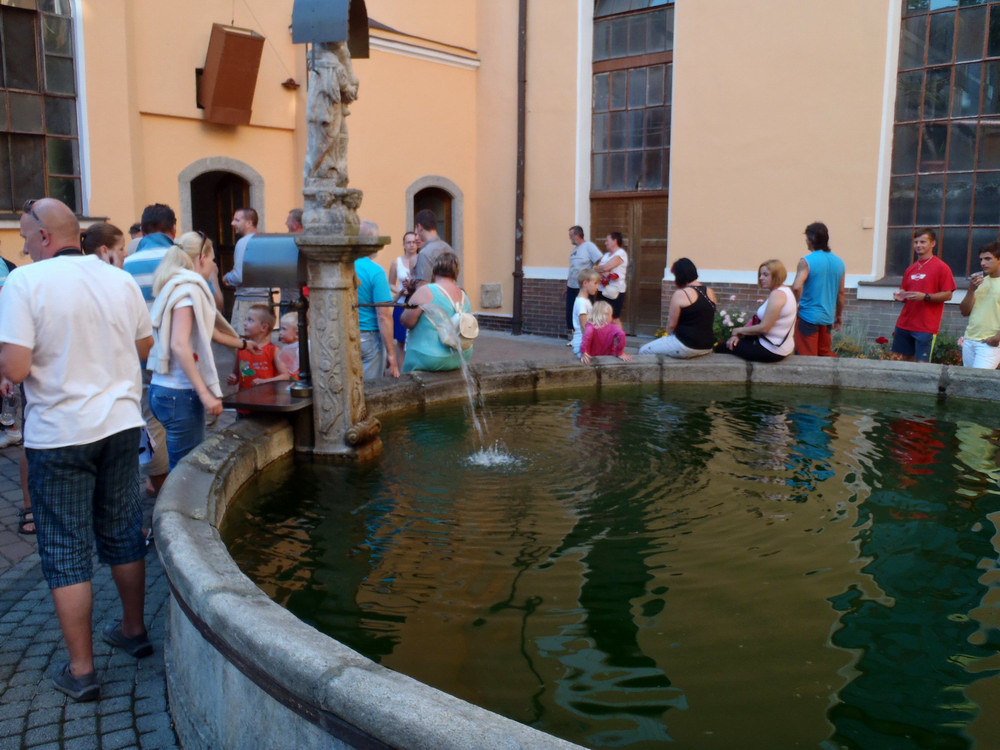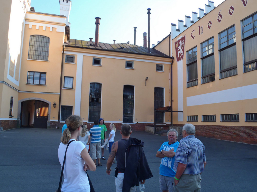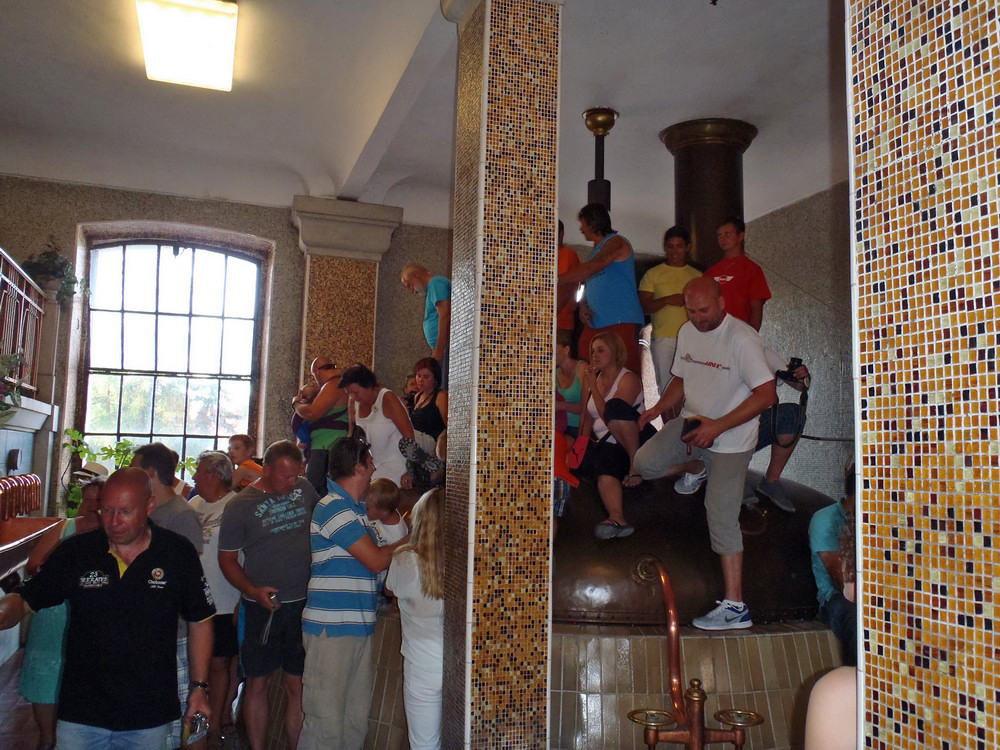 Jakmile doznělo poslední kvílení gum a poklesla hladina adrenalinu, vzal nás sládek na exkurzi s výkladem a provedl nás svým královstvím.. Ojedinělou možnost využili téměř všichni a tak nás to naladilo, že než jsme se vystřídali a napojili u kouzelné kašny, docela to trvalo a nemálo piva proteklo našimi hrdly..