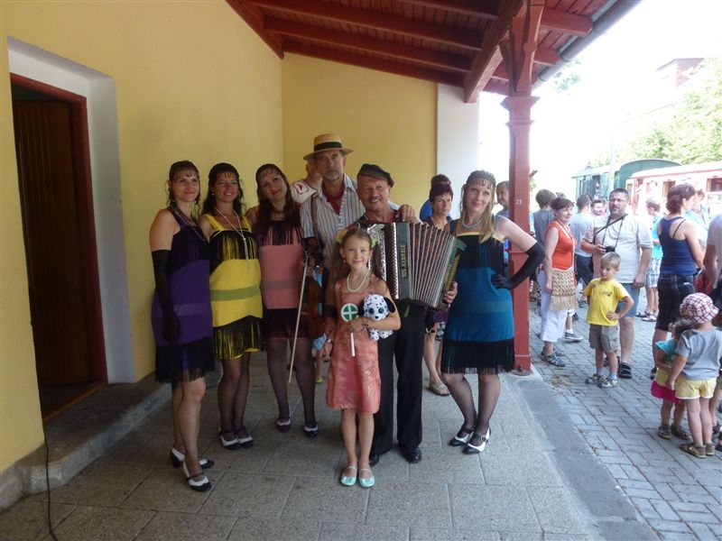 Cíl orientační rally nás zavedl do jedné zapadlé železniční stanice, kde „bez prdele“ končily koleje.. a tak si každý vlak musel přepřahat. Shoda náhod a Jirka Plevka tomu chtěli, že se zrovna v našem cíli konala oslava 110let tamní železnice, takže sláva veliká.. nadšenci dráhy si mohli prohlédnout pojízdná muzea.. Zkusit přesvědčit průvodčího, že za lístek platit nemusí, že má účastnickou placku anebo za 80Kč podniknout cestu parní mašinkou jak z pohádky do nedaleké stanice, kde nám pauzu zpříjemnily charleston nebo swing tanečnice.. (kdo poznal nechť mě opraví.. já umím jen šlapáka