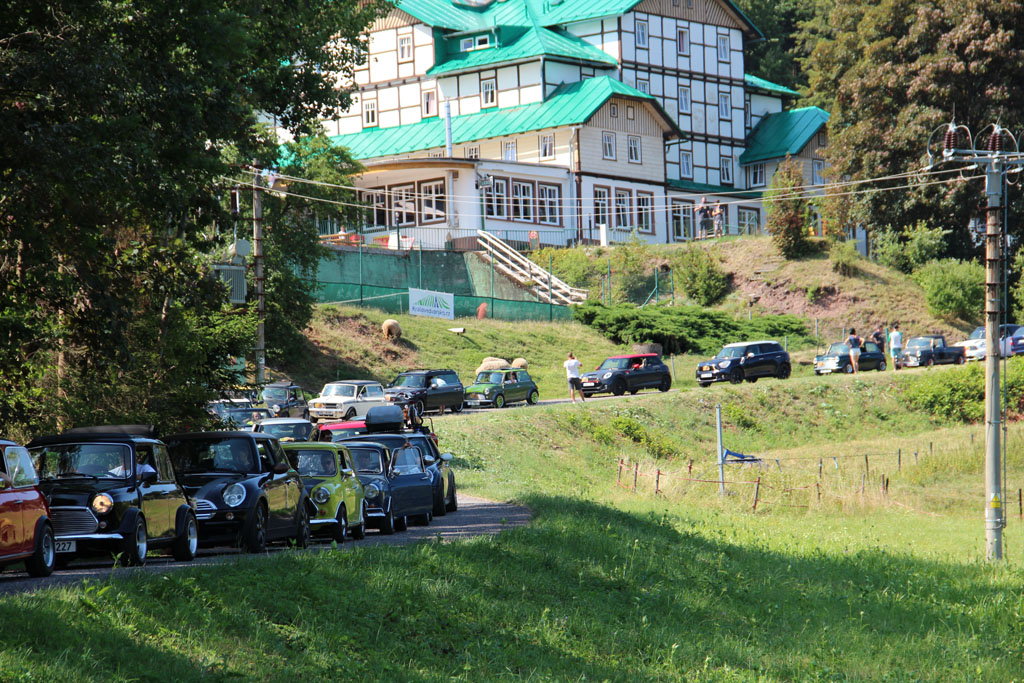 Právě do jednoho takového komplexu nás zavedli organizátoři letos. Krásný prvorepublikový areál bývalých „klimatických lázní“, které se zjevně po letech bez investic dostaly do rukou zahraniční majitelky, která z areálu postupně vytváří útulné stylové prostředí. Jelikož i počet účastníků srazu každým rokem stoupá, tak byla plně využita celá kapacita hotelu, přilehlých budov i chatek.