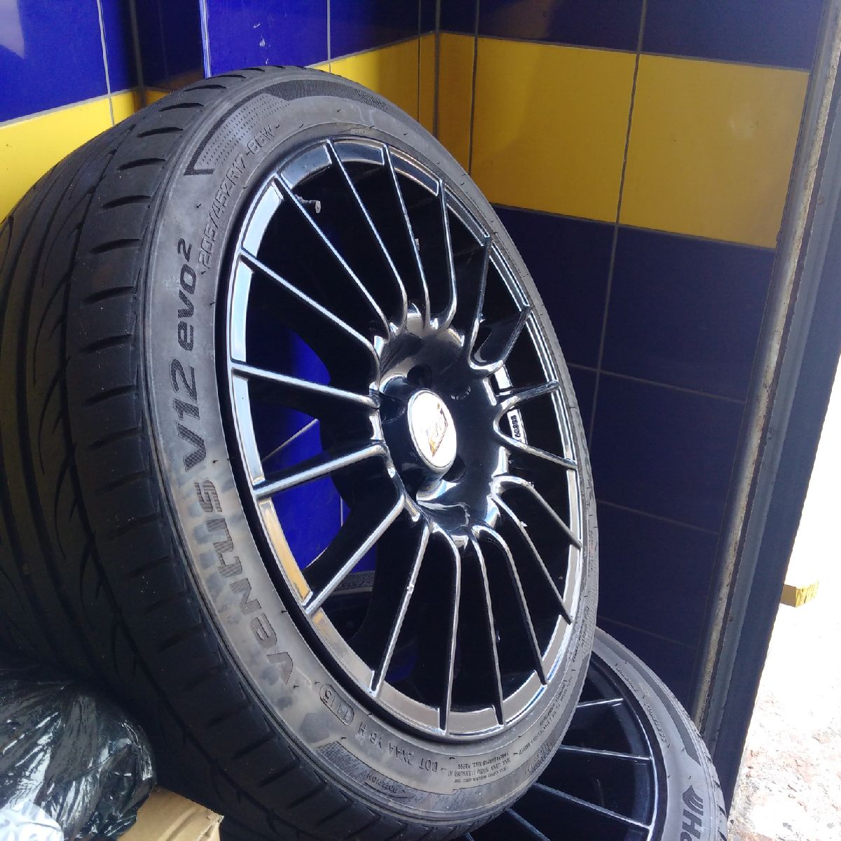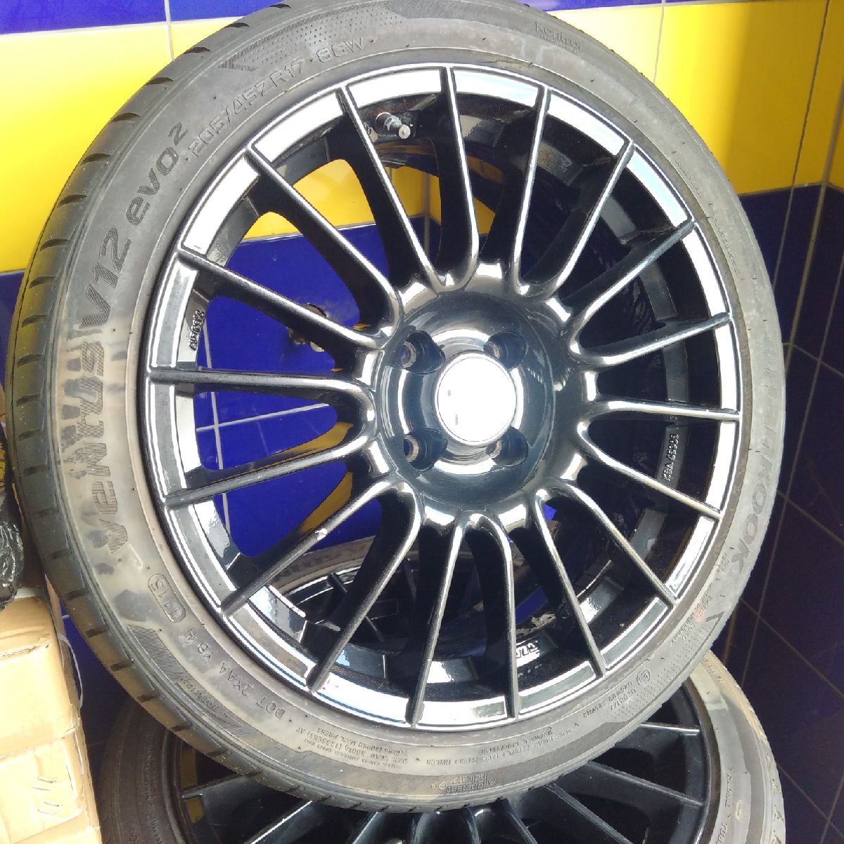 Mám na prodej vcelku pěkné kompletní kola Alu ATS 7,5x17" ET38 s pneu 205/45R17 Hankook Evo2 V12 88W (2x5mm a 2x6mm) viz. fotky níže.