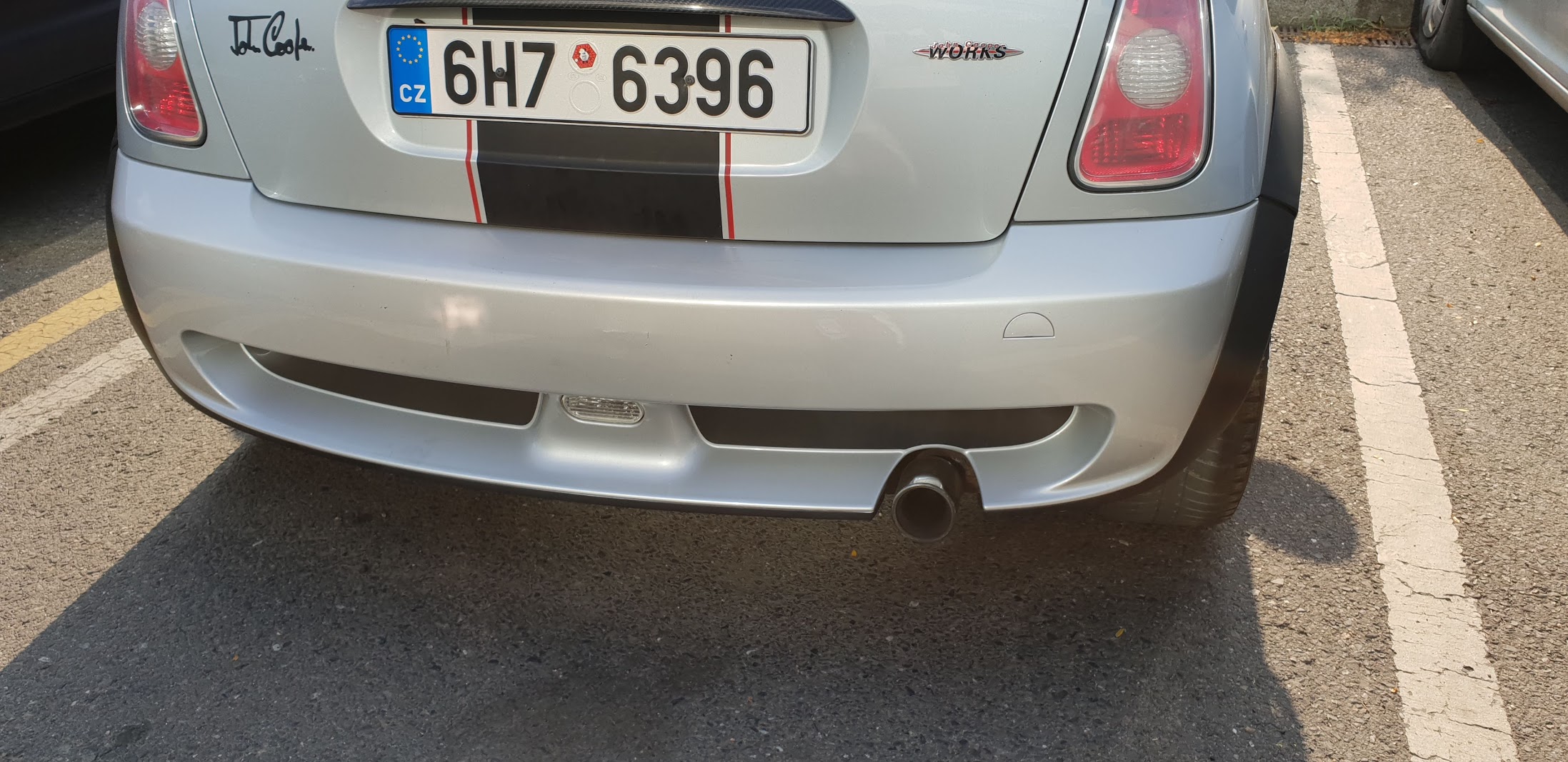 Je to origo z JCW-paketu pro Mini Cooper, tak že je rarita, č. dílu 51120021931, celý aerodynamický paket JCW je popsaný zde