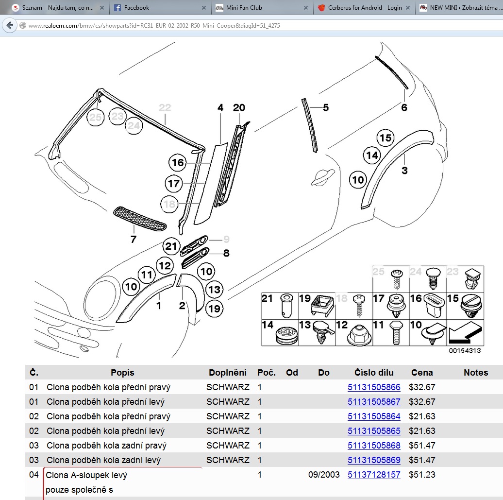 nejaký dobračisko odtrhol pravý predný lem môjmu mimoňovi (Cooper, r.v. 2002). Nejako sa mi nedari dopátrať k náhradnemu dielu. Zohnal som iba lem kapotovej časti. Vedeli by ste mi niekto pomocť. Vopre ďakujem.