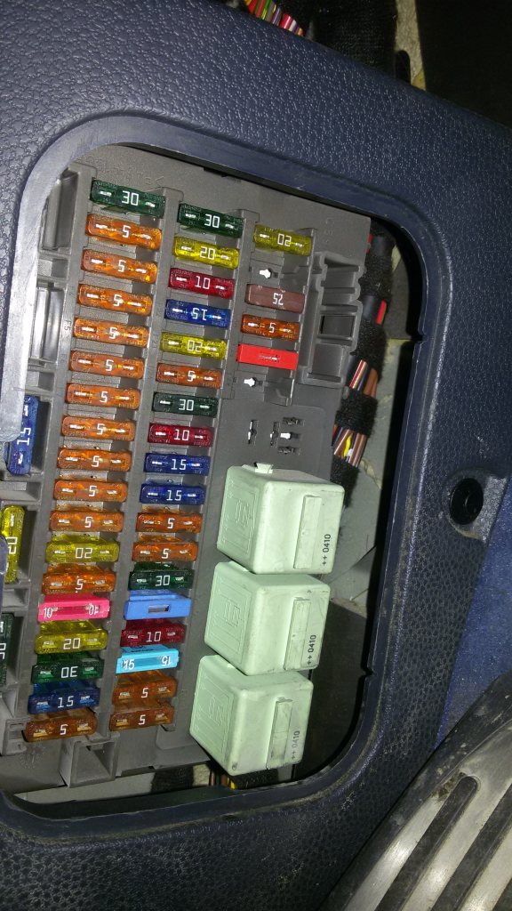 Posilám fotky pojistek (v kabině). Zajímalo by mě jestli jsou korektně zapojené. Taky které patří osvětlení kabiny.