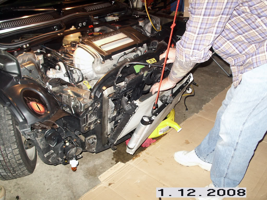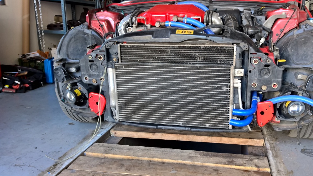 Po kontrole hadic a spojů (chladič je nový) bylo auto nastartované na heveru a čekalo se na nějaký únik. Začalo to kapáním :)