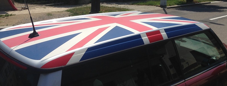 Já mám na starším CLUBMENu Union Jack normálně na stříbrné střeše, skládá se ze tří dílů největší na hlavní části a dva malé na bocích střechy. Každý díl je jedna samolepka se všemi barvami, tedy i včetně bílé. Měl by to být originál od Mini, ale někdy z roku 2008 kdy se začaly prodávat.