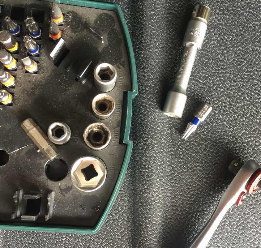 Z nářadí je potřeba: Torx S2/15, malou ráčnu, nástavec šroubováku na torx-padne do ruky lépe než ráčna, jeden kus něčeho o délce cca 50/60cm na podložení zvednutého zadního dílu střechy, starý kartáček na zuby- na okartáčování kraje střechovice od prachu, ocelový kartáček- na šrouby, trochu toho benzínu a čistý hadr na vyčištění prostorů mechanizmu, gumových profilů a plochy pod lišty, silikon na gumové profily/změkčení, WD40 a tenký šroubováček na event. vycentrování nějaké té neposlušné dírky lišta/karoserie. Ferino 2010