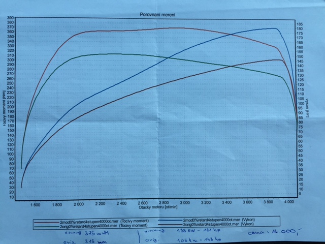 Musím po pravdě konstatovat že jsem byl překvapen jak to funguje, celkově mi přijde že autu pořád něco chybělo co se chodu motoru týká teď opravdu perfektní. Co se týká výkonu těžko říci ,ale snad postačí naměřené hodnoty za které ručím 0-100km/h - 8,16 dříve 9,89 , max. rychlost 213Km/h dříve 202Km/h, spotřeba o 0,7l níže.