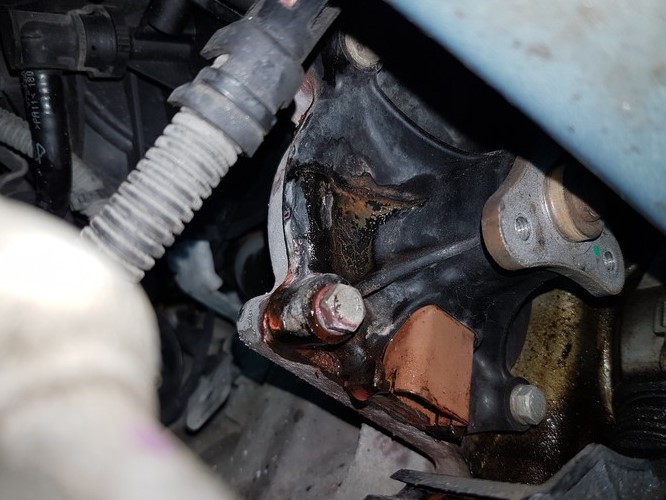 Zároveň mi ukapávala trochu chladicí kapalina, vyměnil jsem expanzní nádobku, která měla zespodu prasklinky, a ukapávání se omezilo na pravou stranu vozu. Takže těsnění vakuové pumpy. Preventivně jsem si objednal celou novou pumpu, když už tam polezu, tak že vyměním nejen její těsnění.