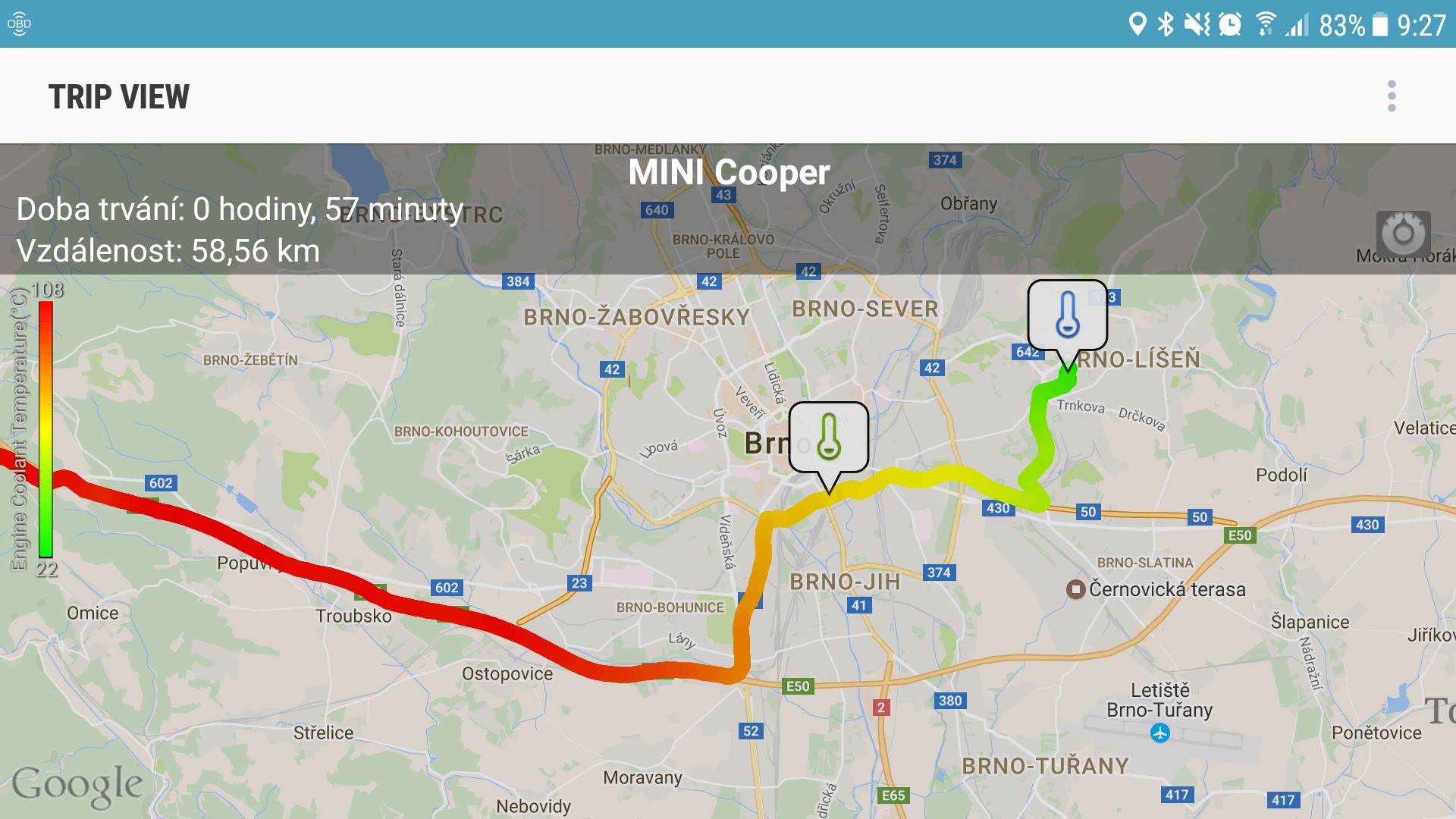 - ještě jsem za jízdy sledoval teplotu přes OBD na mobilu (Torque) takže bylo vidět, jak se postupně stabilizuje a všechno maká jak má.