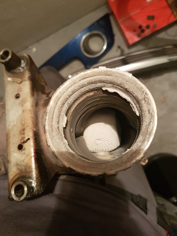 Tak mám opraveno, opravdu byl vysypaný katalyzátor. Vnitřní část nějaká rozlámaná, kusy lítaly uvnitř. Na fotce je vidět bílý vnitřek, který se volně pohybuje a naráží do lambda sondy.