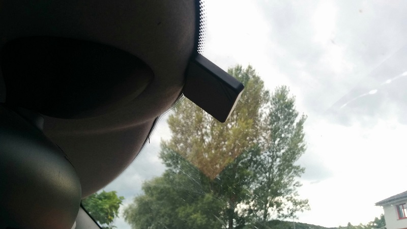 Na předním okně je zevnitř něco, podobající se anténě od HF či co? Před hodinami mám také mikrofon.
