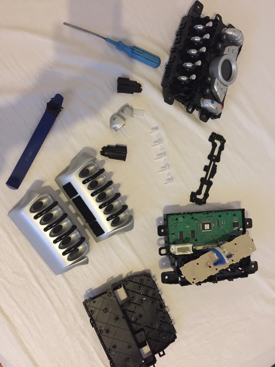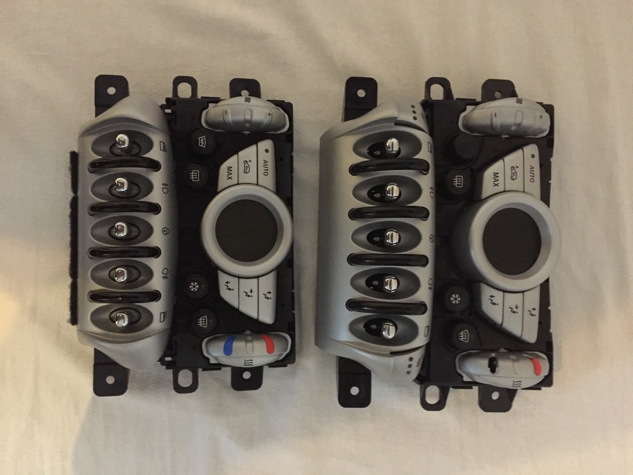 Vyhrievané sedačkyVzhľadom na to, že Recaro sedačky už majú v sebe zabudovaný výhrev, tak mi dlhú dobu vŕtalo v hlave dorobiť si vyhrievané sedačky - ale odradzovala ma nutnosť zakúpenia kompletného retrofitu od BMW. Retrofit obsahuje vyhrievacie deky, moduly sedačiek a podobné srandičky, ktoré som nepotreboval. Jediné čo som z retrofitu potreboval bola kabeláž. Napriek tomu som sa rozhodol a zakúpil to ako komplet. Taktiež som musel vymeniť panel klimatizácie kvôli chýbajúcim tlačidlám na ovládanie výhrevu sedačiek. Panel som zohnal na Allegre a vzhľadom na menšie komplikácie som musel z dvoch panelov urobiť jeden aby všetko fungovalo tak ako má. Retrofit vyhrievaných sedačiek rozhodne odporúčam - je to fakt slasť!
