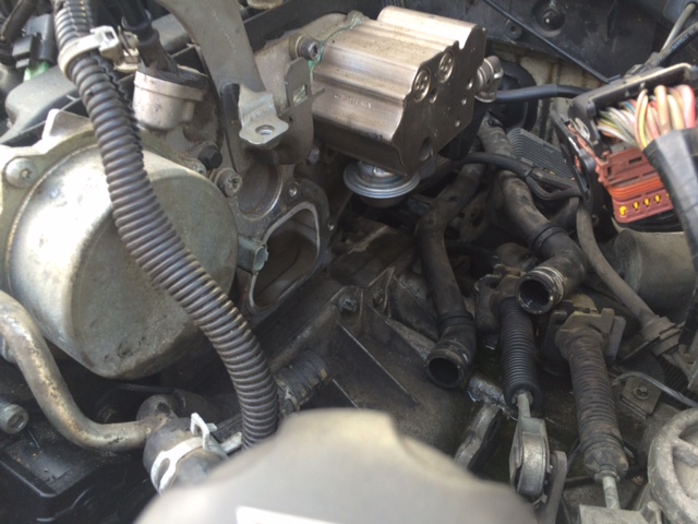 Takze zavada byla jasna, praskly/prosakujici termostat. Takze rychly telefon do prace, ze jako fakt nemuzu prijet a hned dalsi do Inveltu. Nastesti jsem mel kliku, ze termostat byl skladem. Takze rezervace, skoceni do BMW a trada.. Bouzel cena je smrtelna, 3500,- v nakupu (udelal jsem smutny oci) a tedy nakonec za 3092,-. Doma jsem jeste skouknul na Youtube video, jak na to a uz se to odstrojovalo. Zkratim to. V zasade vsechno dobry, az na zarostly spoj mezi termostatem a trubkou od vodni pumpy. Takze jak jsem to pacil, podarilo se mi vyrvat i tu propojovaci trubku. Tragedie (proc pred srazem ??) Odneslo to plastove osazeni na konci trubky a tesneni (mezi nami, ten spoj funguje jen jako rozperna trubka mezi pumpou a termostatem. Zadna pojistka, vubec nic :evil: