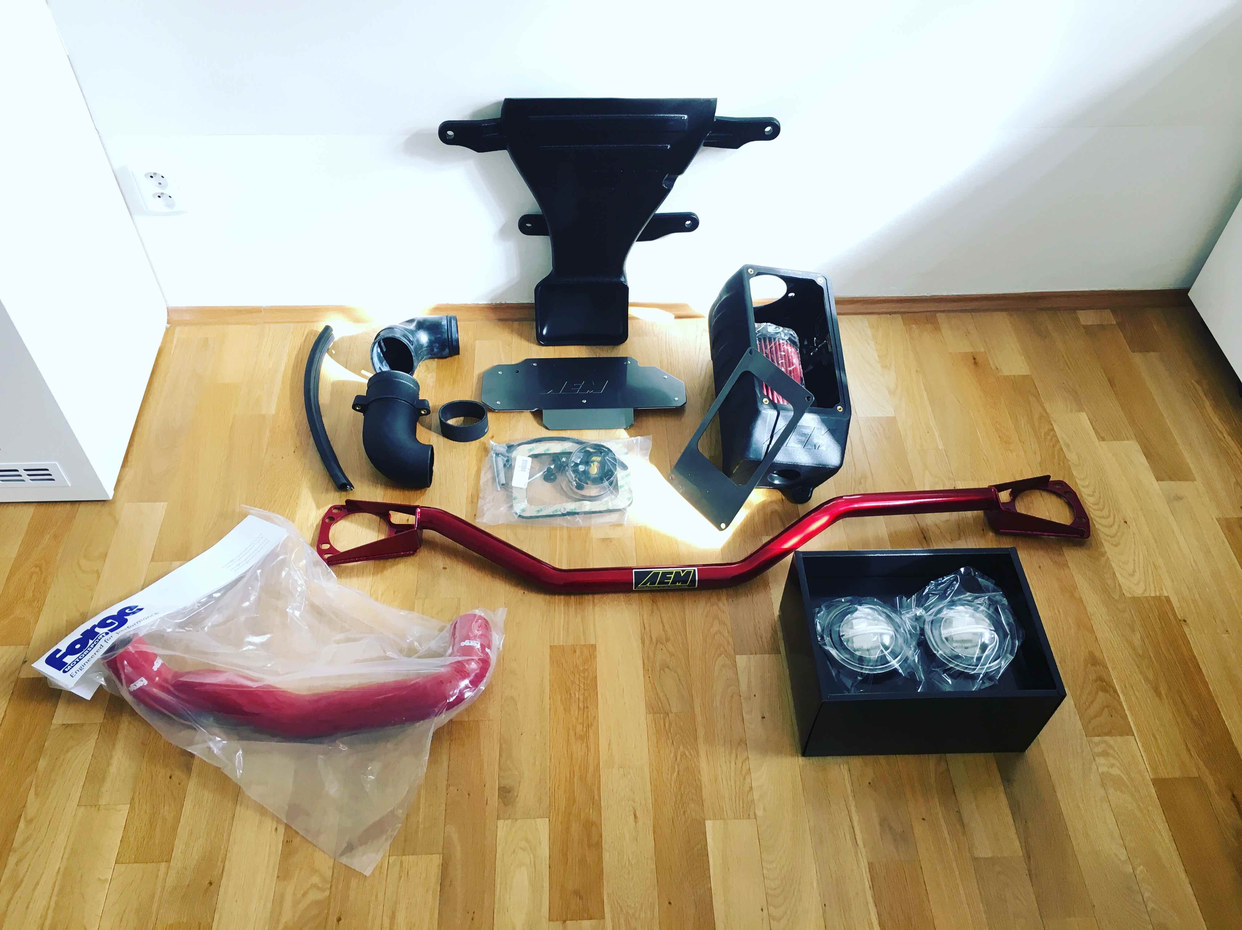 Už je objednaný GP2 difuzor, downpipe, AEM air intake sys, ledkové mlhovky, turbo muffler delete pipe a přední rozpěrná tyč :-)