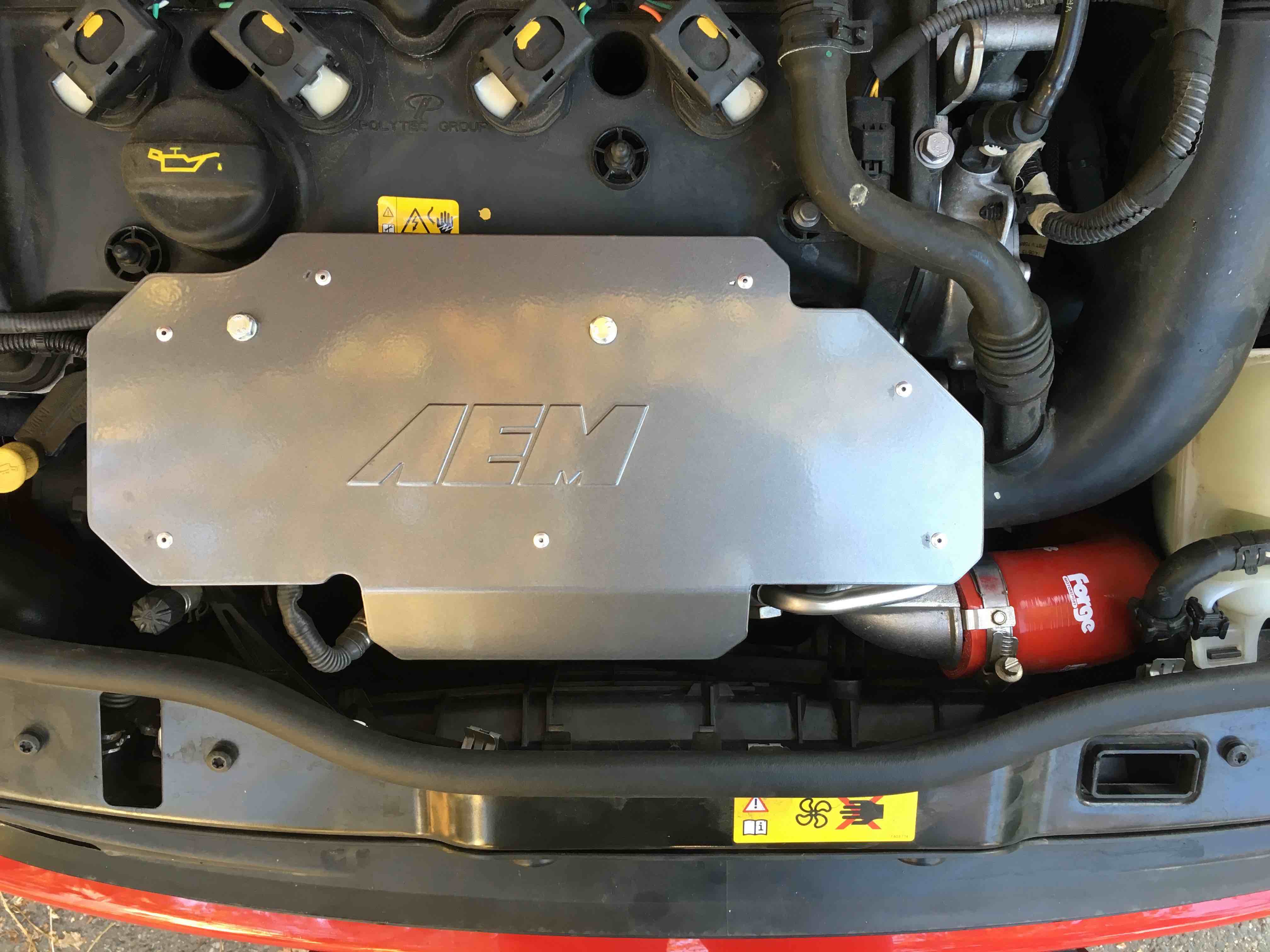 Když se podíváte na detail fotky tepelného štítu, tak také vidíte červenou trubku vedoucí z turba do intercooleru, která přidala krásný dunivý zvuk :D