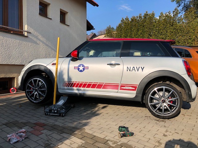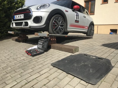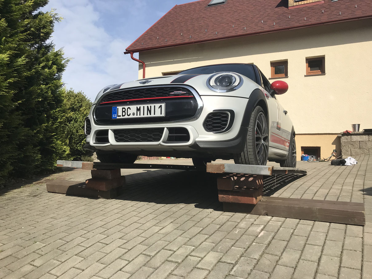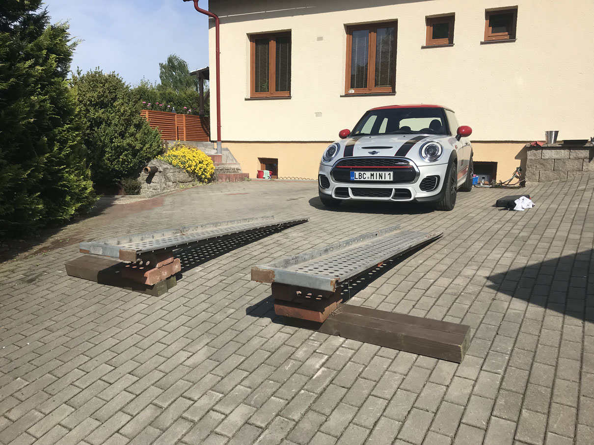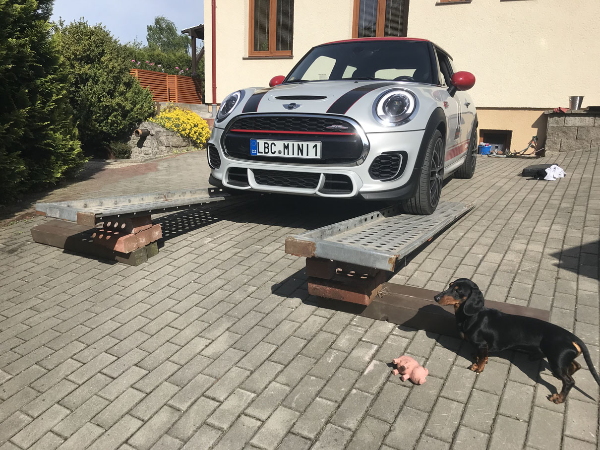 tak jsem pánové udělal velikou fotogalerii výměny oleje a filtru u F56. Sehnal jsem si nájezdy od souseda, počkal až bude hezky a dneska se do toho pustil.