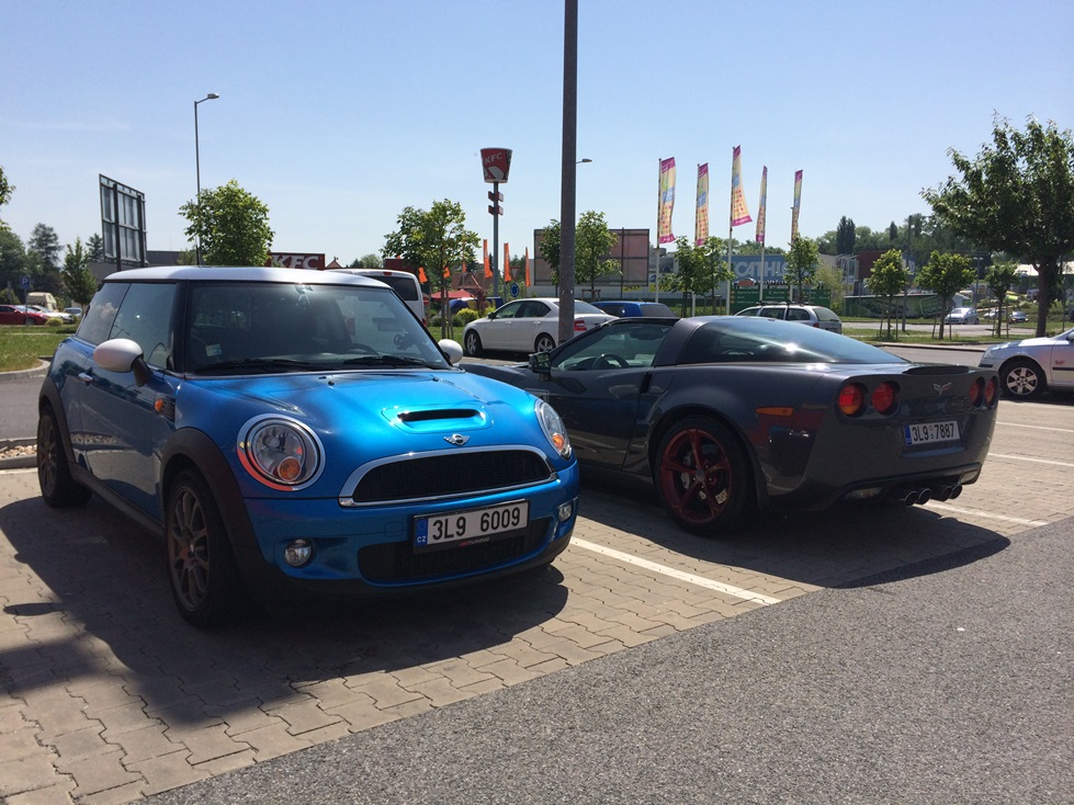 přijedu si dneska ke Globusu v LBC ze strany Elektroworldu. A stojí tam nádherný Modrý Cooper S, opodál Compocore černoch a u Meka dalších černoch. Bohužel jsem nebyl britským vozem, přesto mi bylo ctí vedle modráka zaparkovat. A při odchodu šla k autu paní středních let, tak jsem jí hned vysvětlil, že je potřeba se sem na nás podívat. A prý mají v rodině dokonce 3 Mini !!! Trestuhodná nedbalost z jejich strany 8) .