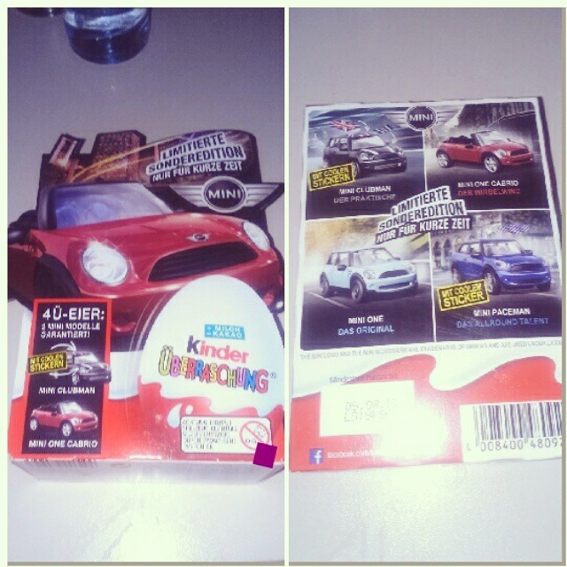 Toto je nejaká limitovaná edícia kde máte v balení 4 vajíčka a v dvoch máte garantované Mini a môžete si vybrať Clubman a Cabrio alebo One a Paceman. Ale aj v samostatných vajíčkach je možné nájsť autíčko.