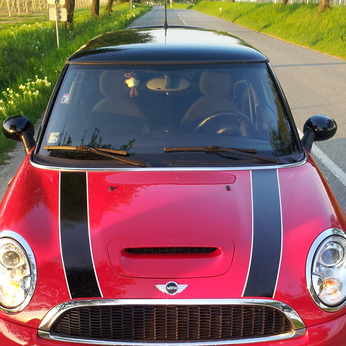 ahoj, již delší dobu jsem neustále řešil polep(pruhy na kapotu R50).měl jsem strach ze zahnutí. Pak jsem viděl na parkovišti jednoho miníka s pruhy a tak jsem si je obkreslil na pauzák a pruhy byly rovné, i když na autě vypadaly zahnuté.