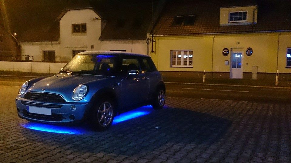 Za mě velký palec hore !! :) :thumbup: MINI je předce o individualitě :)... mimoto zrovna včera jsem narazil na modrý led pásek za dobré prachy, tak mě po chvíli napadlo dát si to pod auto.. hledal jsem na googlu jestli už to někdo má a jak to vypadá cca a teď koukám na forum :D a co nevidím :D modré neony pod modrým mini :D .. tož, předběhl jsi mě :D ale pěkné fakt Yellow_Flash_Colorz_PDT_19