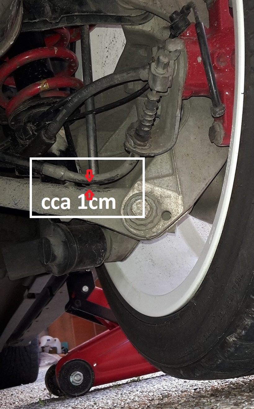 Níže fotka R56 s H&R pružinami. Moc místa tam mezi ramenem a tou trubkou není, ale je vidět že se to nedotýká nikdy.