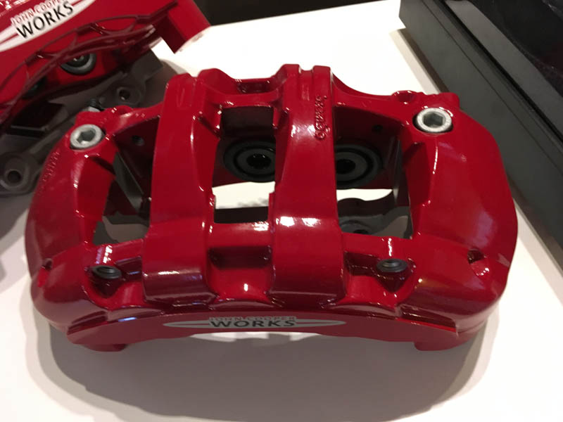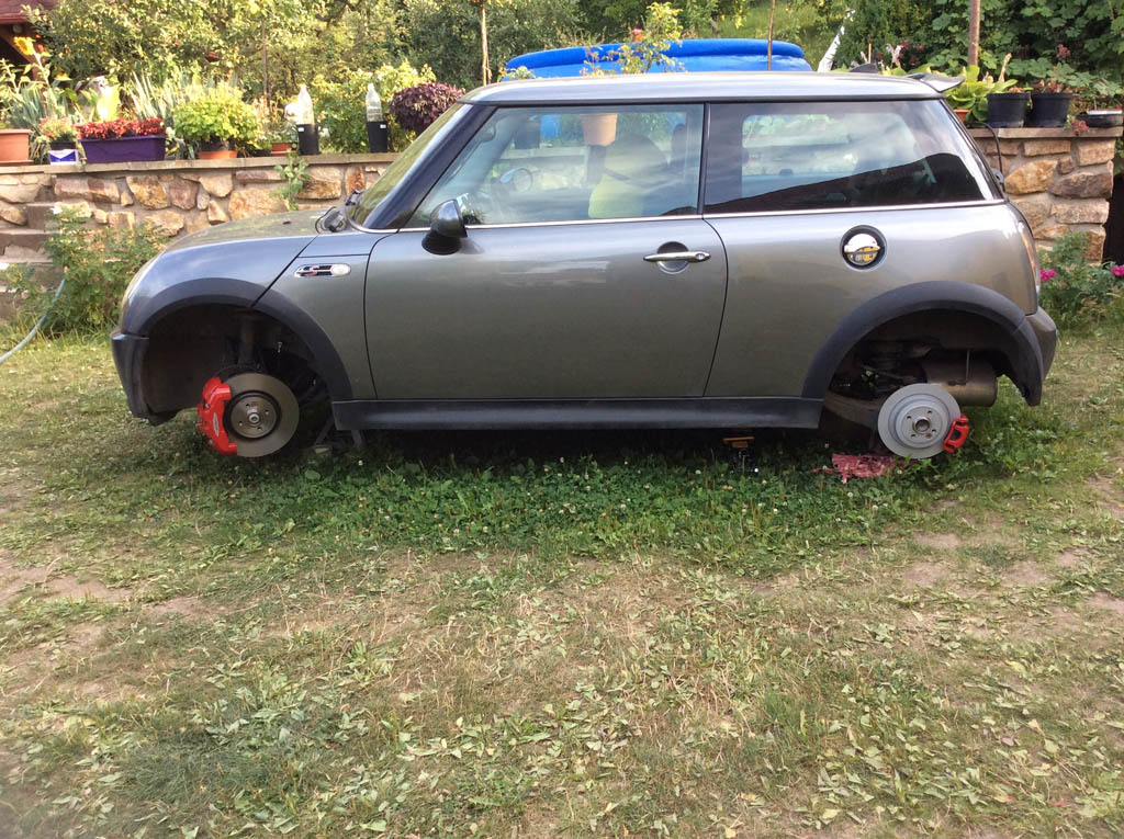 Jen pro info, nesedí přední štíty, ale lze převrtat, čidla opotřebení mají trochu jiné konektory, ale po menší úpravě jdou použít (ty z R56), na zadní nápravě nejsou ani díry pro štíty, u zadních brzd nelze dát hadice přímo na třmeny (muselo by se ubrat trochu materiálu z ramene), vyřešil jsem krátkou trubičkou.