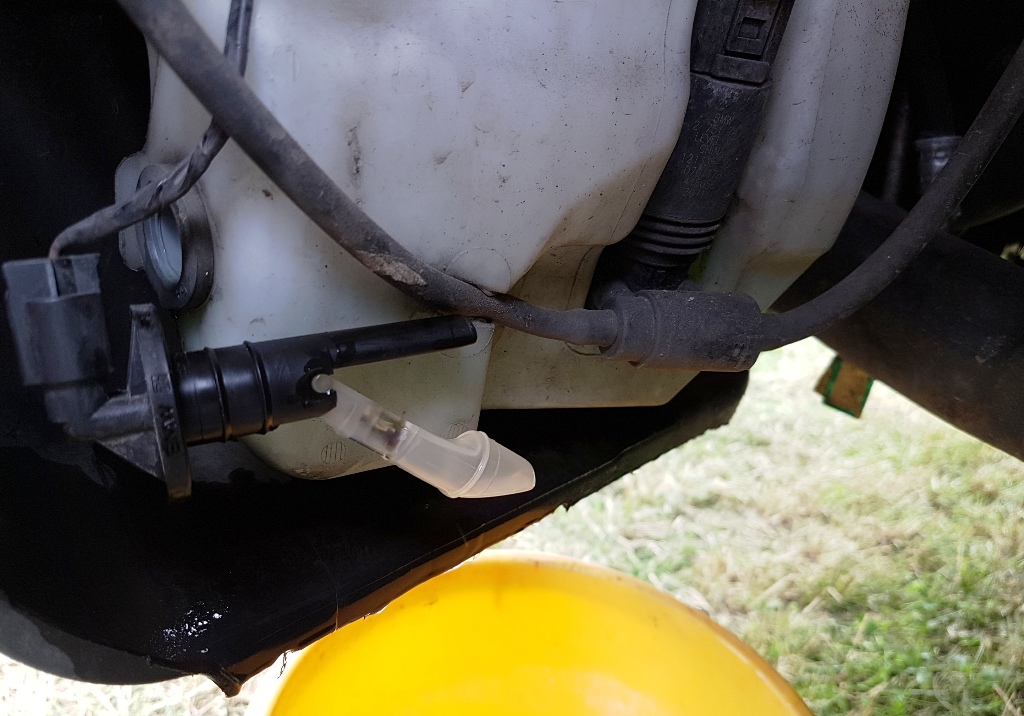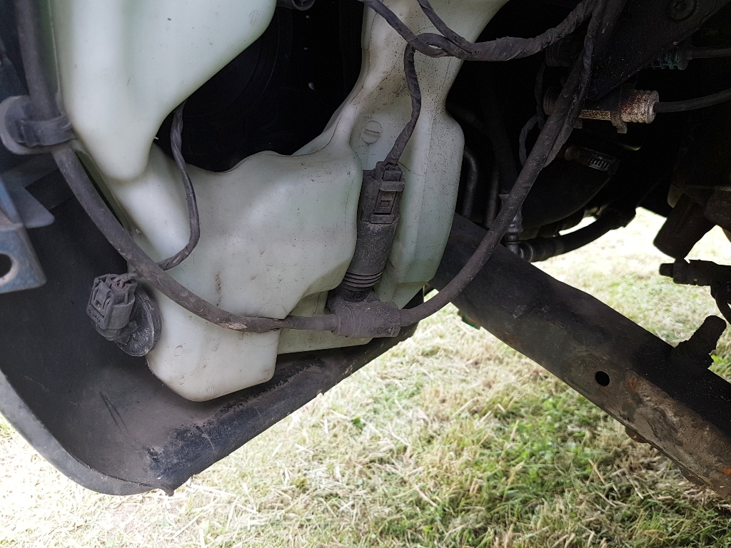 Chybka byla v konektoru u čidla kontroly nízké hladiny. Pěkně sundat kolo a podběh a je tam vidět. Konektor je (jako naprostá většina ostatních v motorovém prostoru) vodotěsný, ale zřejmě došlo ke špatné montáži buď ve výrobě nebo při nějaké předchozí opravě. Byla v něm vlhkost a kontakty byly mírně korodované. Trochu Concoru to spravila :bigups: