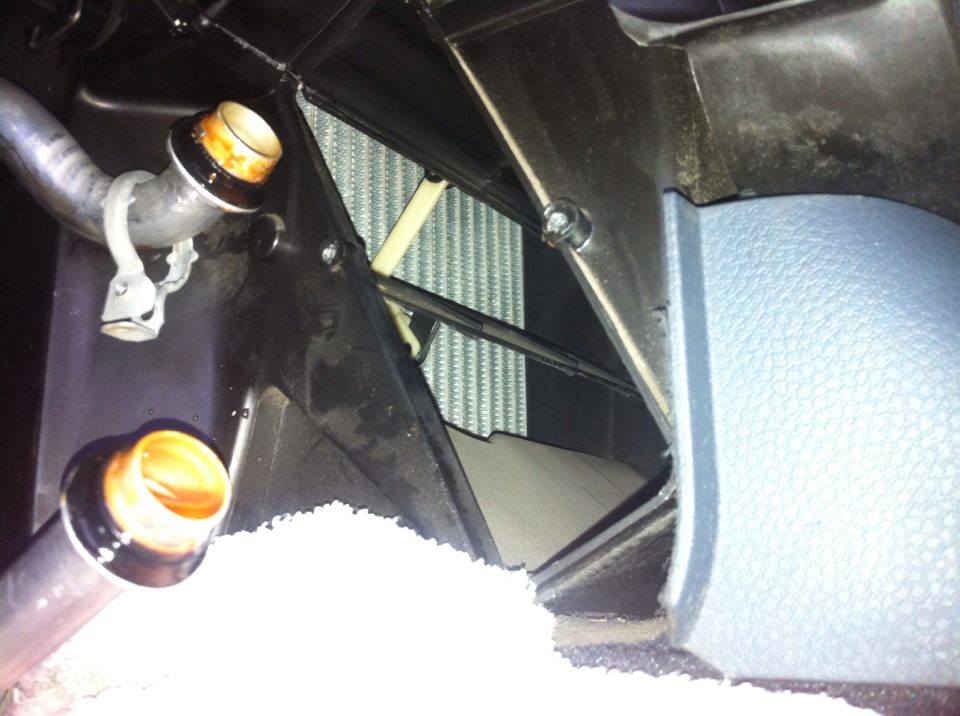 Odčerpal jsem nádržku ''coolant tank'', ze které předpokládám saje potrubí, které vede k topnému jádru/tělesu v rozdělovači vzduchu pod palubní deskou. Zkusil jsem topné těleso vyndat a vyčistit, vyplavilo se z něho pěkné množství nečistot podobných písku. Těleso jsem zpět namontoval. Jediné co jsem tím zjistil bylo, že se potrubý znovu nedoplnilo z nádržky. Z čehož usuzuji, že nefunguje cirkulace a přívod kapaliny od motoru.