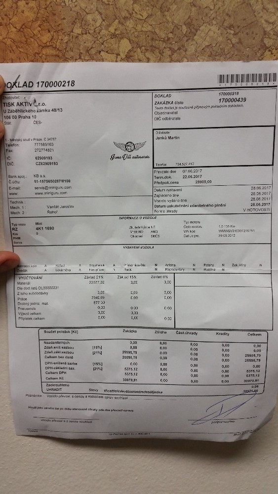 Pán byl velmi slušný a ochotný, zmínil jsem se o tom, že jsem si nechal zjistit ceny i jinde, kde se dost liší. Překvapilo ho to, prý kdyby byla možnost, klidně by mi objednal díly třeba od Bosche za třetinu, ale nic takového není. Kdybych něco takového našel, ať mu to určitě pošlu, že je na to zvědavý. Přikládám fakturu..