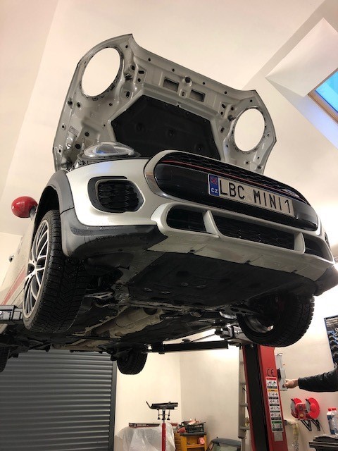 tak jsem pánové udělal velikou fotogalerii výměny oleje a filtru u F56. Sehnal jsem si nájezdy od souseda, počkal až bude hezky a dneska se do toho pustil.