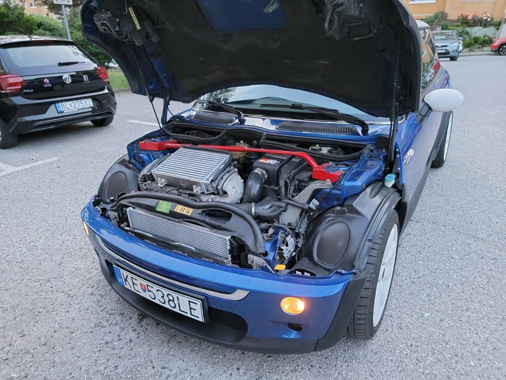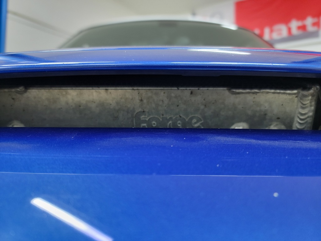 Zrezal som tiez uchyt intercoolera o cca 5mm aby som vytvoril vacsi gap medzi kapotou a IC a nabeh vzduchu bol priemejsi na rebra IC. Ako ale vidim, budem to musiet este viac zrezat.