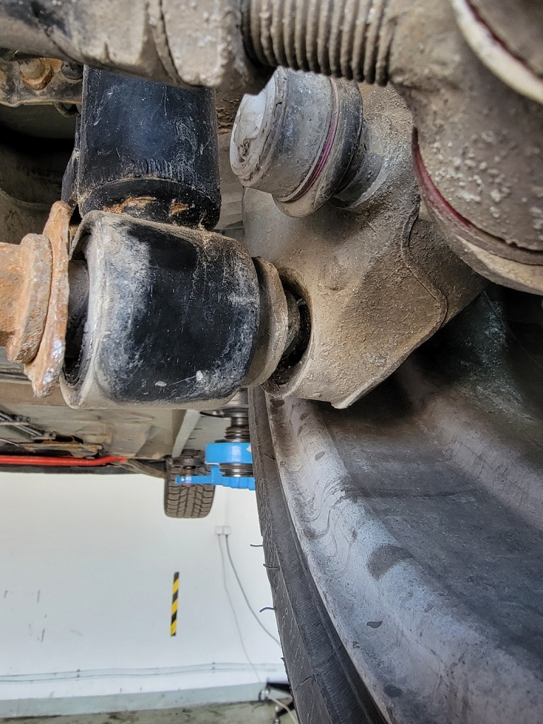 A v dnes som vymenil horne ulozenie za nastavitelne od Silver Project. Trosku som napravil Mushtooming lebo uz bol znacne viditelny. Vymenili sa tycky stabilizatora vpredu aj vzadu. Vzadu som musel spodny zavit trosku zrezat, lebo sa nedaju vybrat/vlozit od stavitelnych ramien a aby sa nemuselo pri kazdej vymene chodit na geometriu, tak som zavit skratil o cca 6mm.