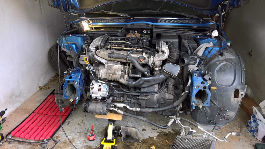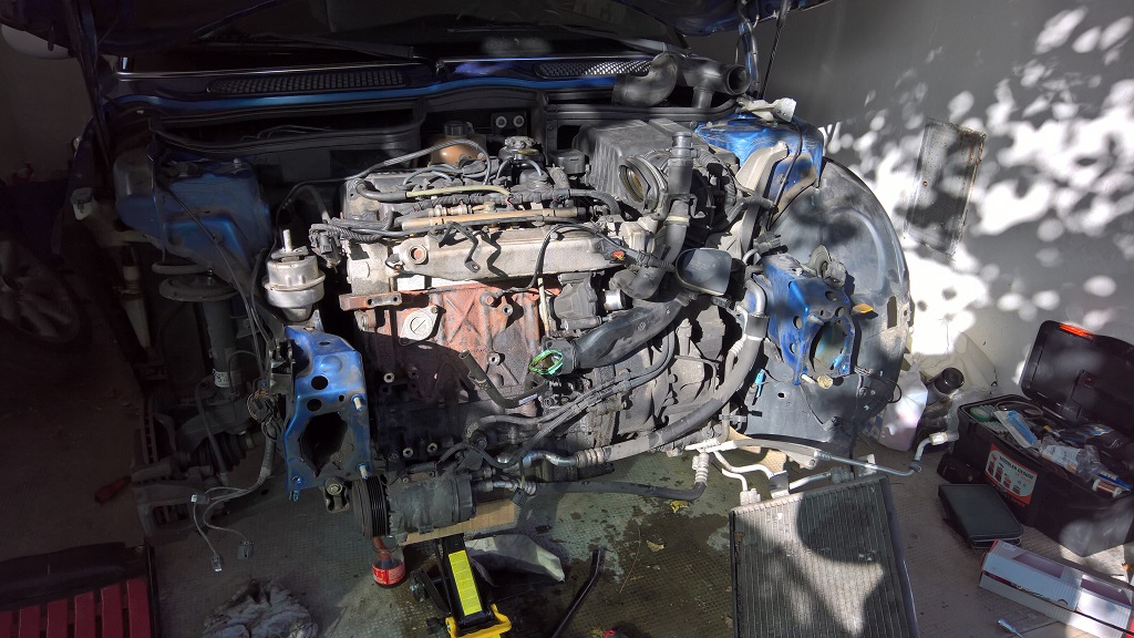 Na druhy den rano som pokracoval s rozoberanim. Prv som odstranil stary alternator ktory neskor nahradim novym. Druhe bolo na rade kompresor. Zistil som pocas rozoberania ze nie je nutnost vyberat aj vodnu pumpu