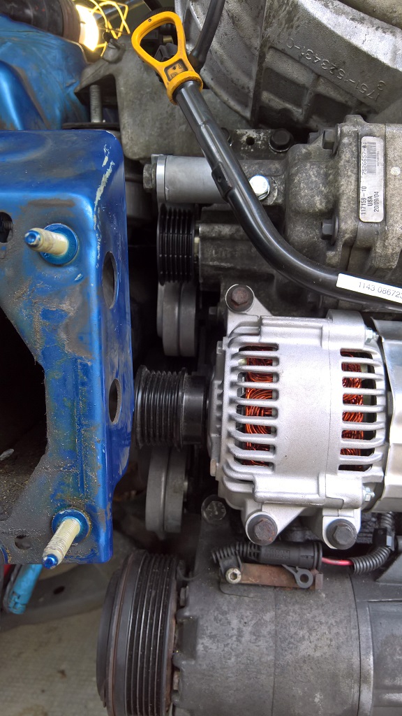 V stredu som pokracoval postupnym skladanim auta. Vymenila sa napinacia a vodiaca kladka. Remen sa daval novy Gates K060535 ktora je odporucana standard balancer a Alta 15%. Je kratsia od povodnej o cca 1cm.