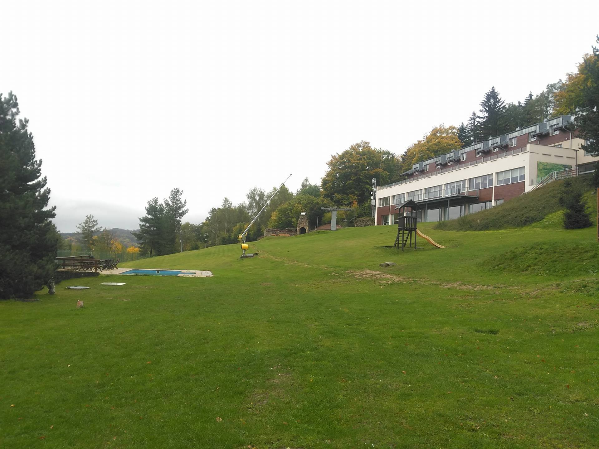 Myslelo se i na děti, takže pískoviště, skluzavka a hooodně místa pro běhání po kopcích je zajištěno ;-) dále je možnost lanového parku, a dalších aktivit, co areál nabízí.